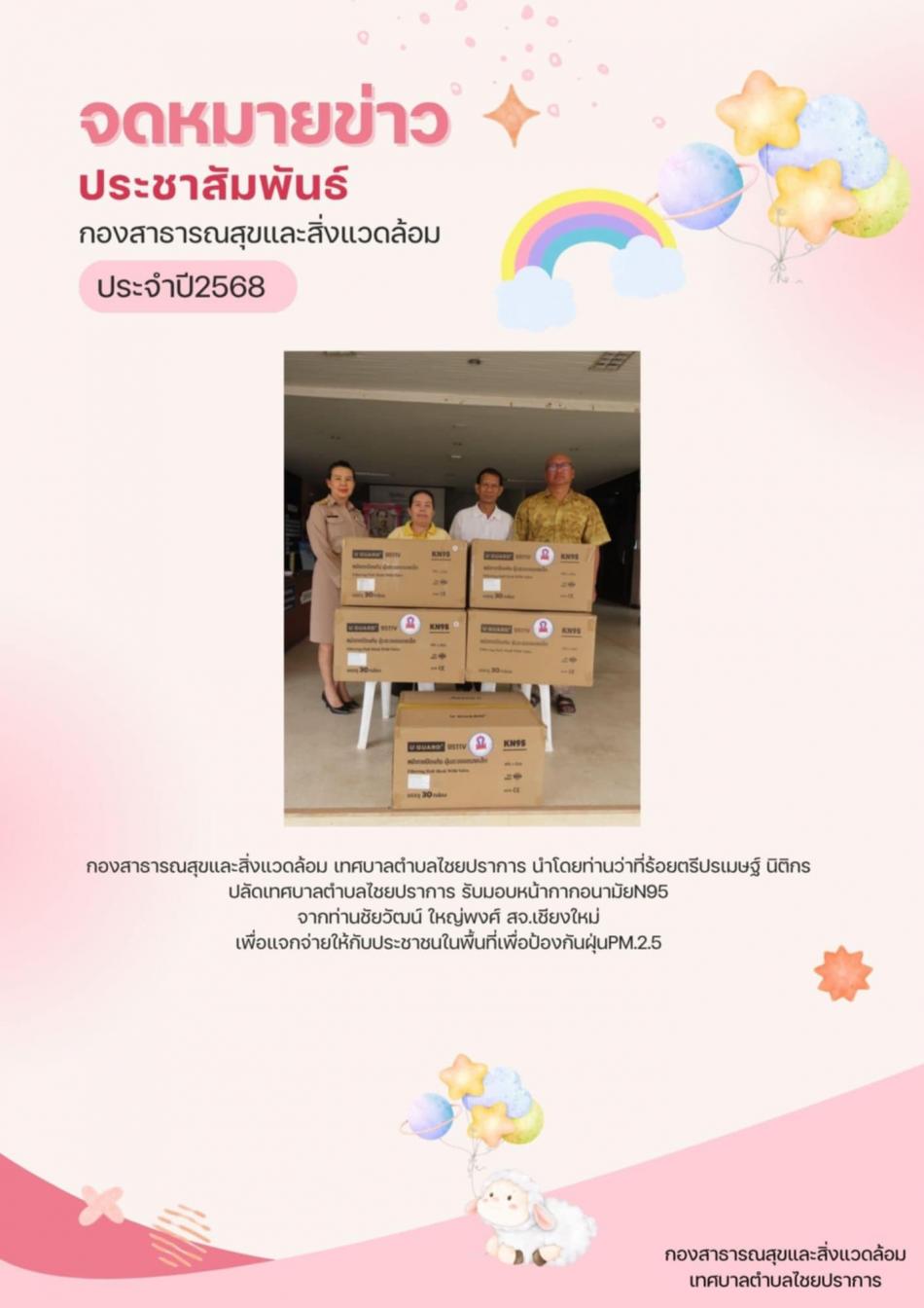 รับมอบหน้ากากอนามัยN95 จากท่านชัยวัฒน์ ใหญ่พงศ์ สจ.เชียงใหม่ จากองค์การบริหารส่วนจังหวัดเชียงใหม่ [14 พฤษภาคม 2568]