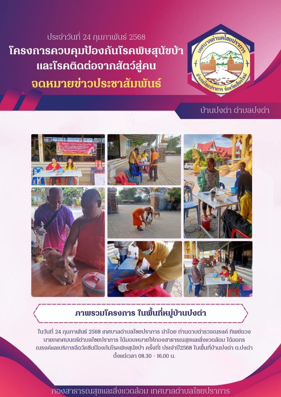 ในวันที่ 24 กุมภาพันธ์ 2568 ออกรณรงค์และบริการฉีดวัคซีนป้องกันโรคพิษสุนัขบ้า [24 กุมภาพันธ์ 2568]