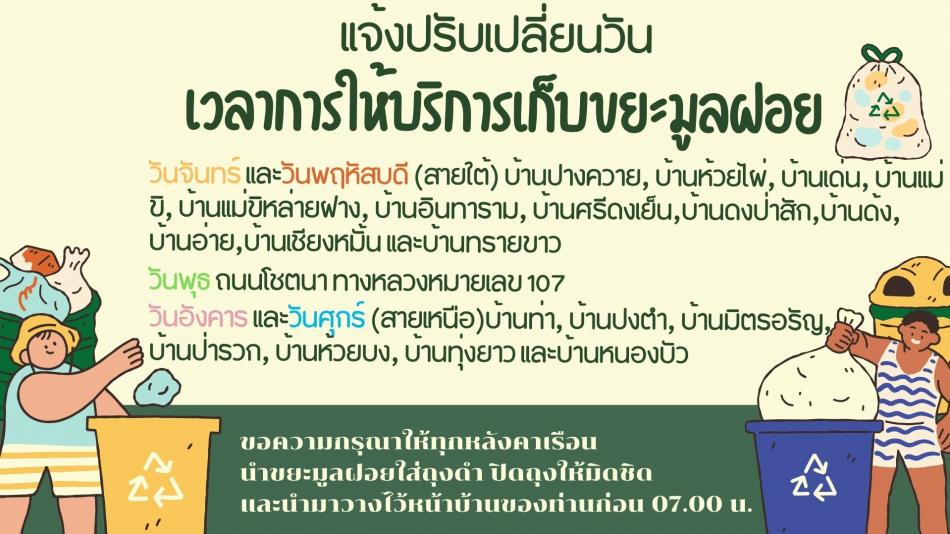 แจ้งปรับเปลี่ยนวัน และเวลาการให้บริการเก็บขยะมูลฝอย [2 กันยายน 2568]