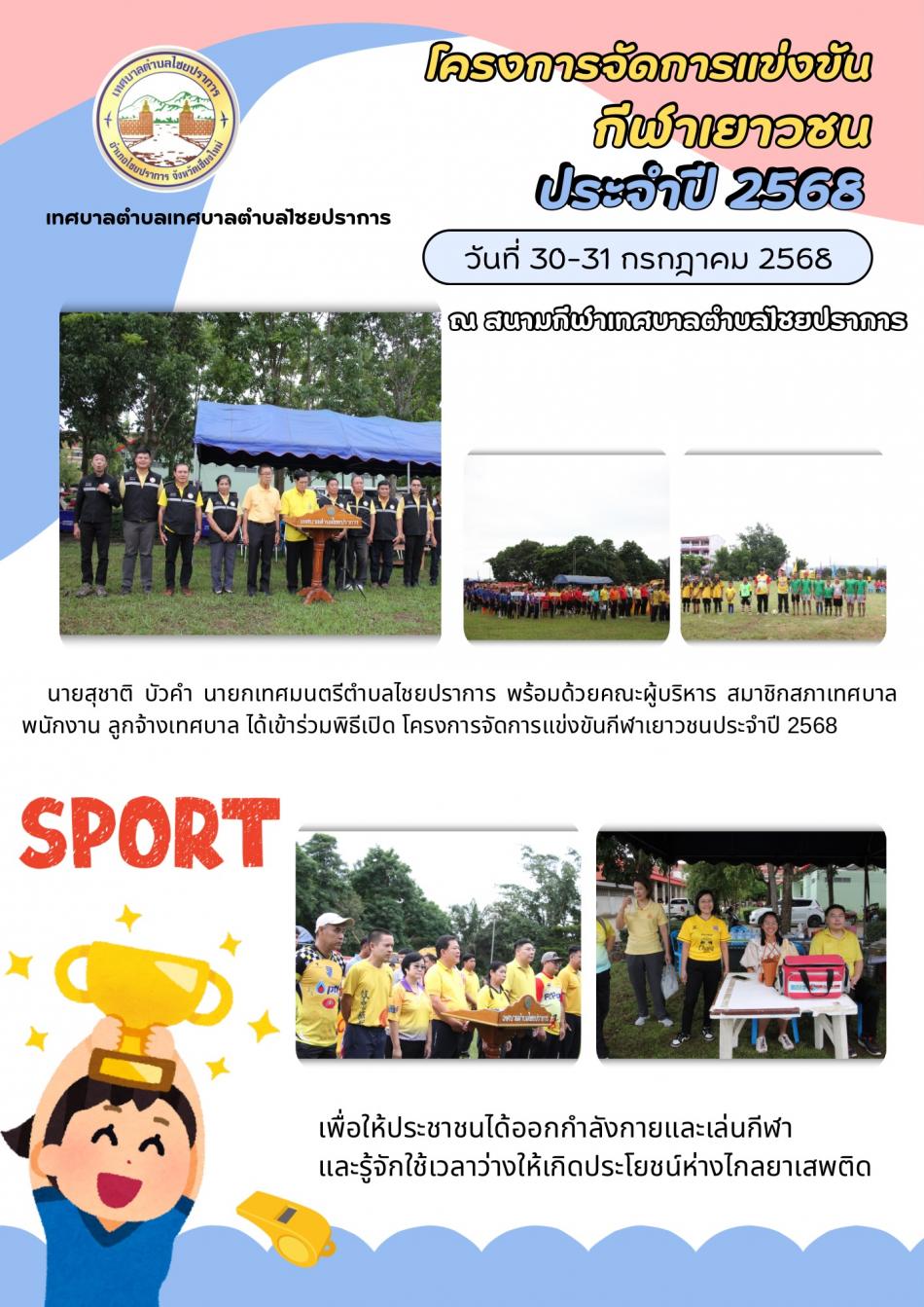 โครงการจัดการแข่งขันกีฬาเยาวชนประจำปี 2568 ณ สนามกีฬาเทศบาลตำบลไชยปราการ [30 กรกฎาคม 2568]
