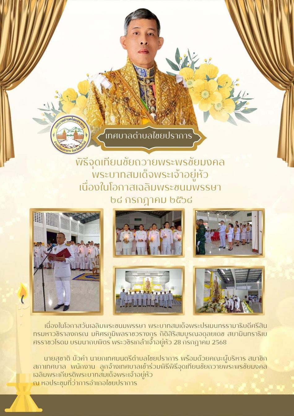 พิธีพิธีจุดเทียนชัยถวายพระพรชัยมงคลเฉลิมพระเกียรติพระบาทสมเด็จพระเจ้าอยู่หัว 28 กรกฎาคม 2568 [29 กรกฎาคม 2568]