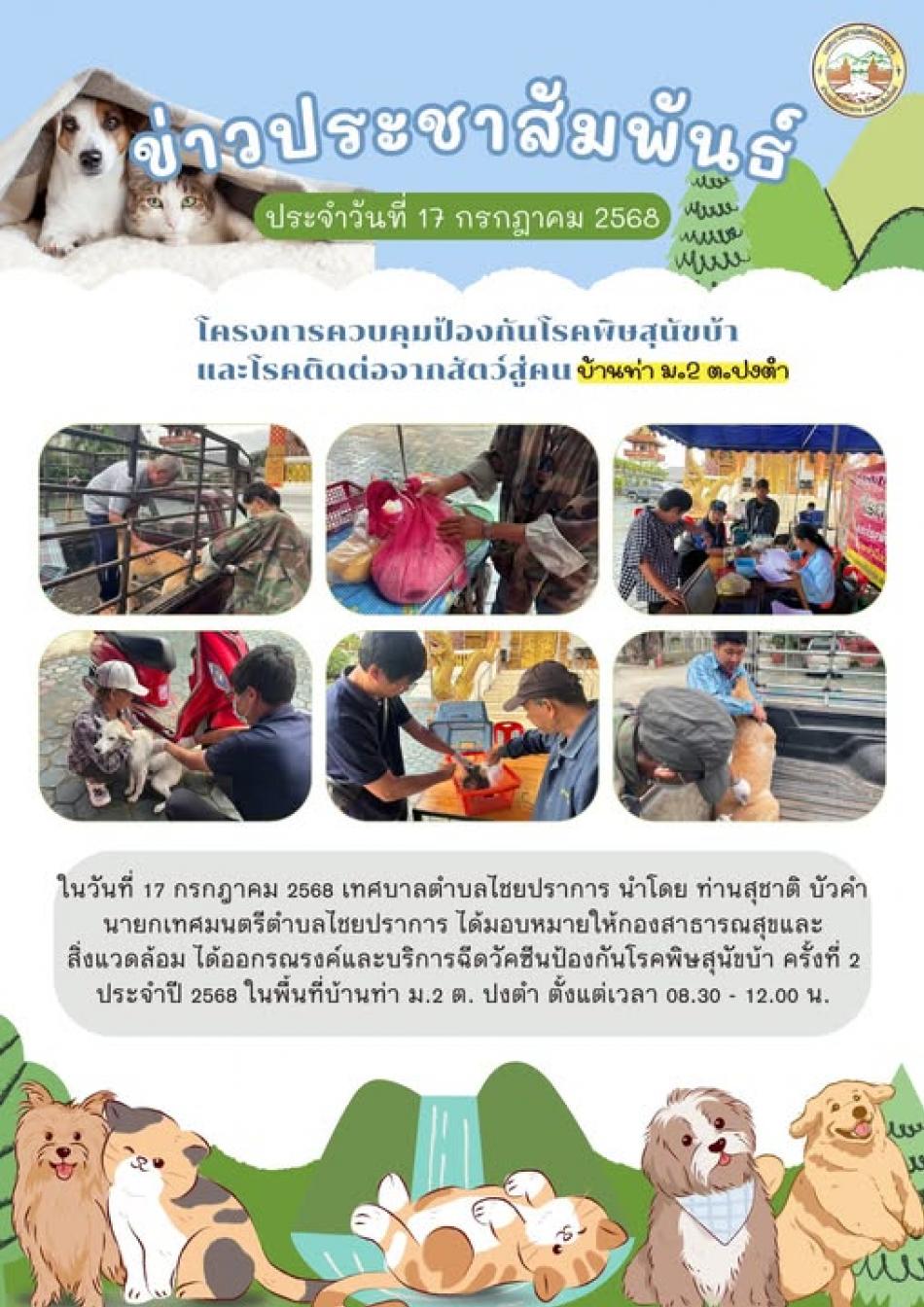 ออกรณรงค์และบริการฉีดวัคซีนป้องกันโรคพิษสุนัขบ้า ครั้งที่ 2 บ้านท่า [17 กรกฎาคม 2568]