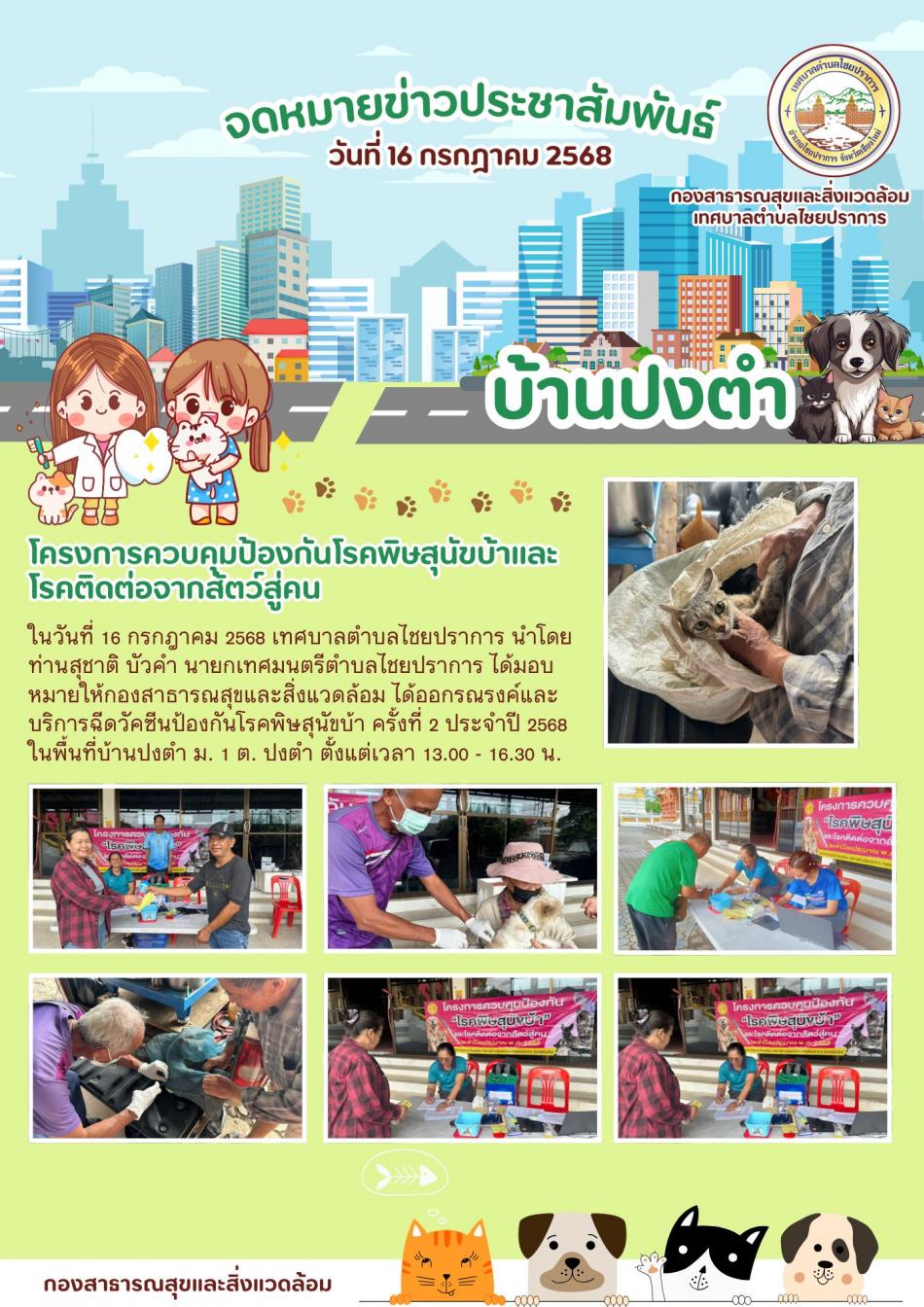 ออกรณรงค์และบริการฉีดวัคซีนป้องกันโรคพิษสุนัขบ้า บ้านปงตำ [17 กรกฎาคม 2568]